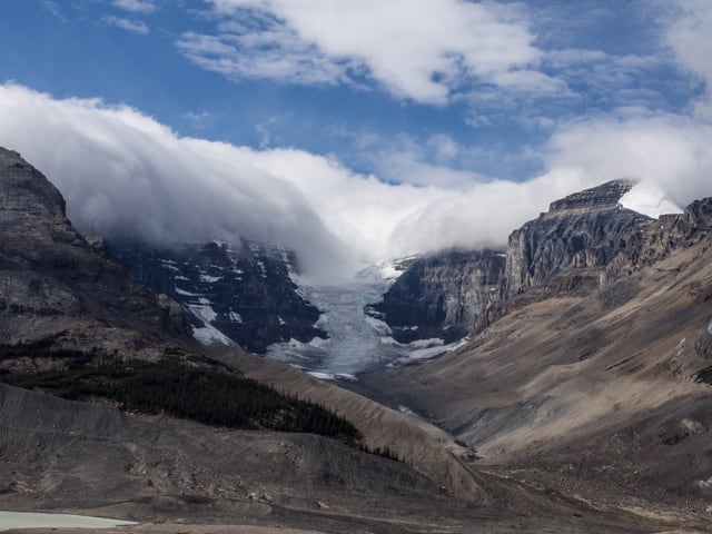 コロンビア氷原とそこから流れ出すスタットフィールド氷河